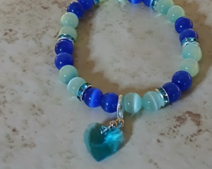 Teal and blue cat eye bracelet with a teal heart charm