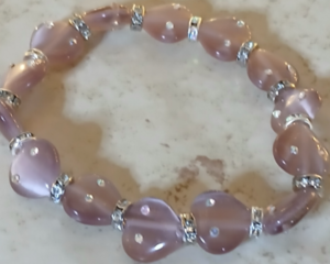 Lavender cat eye hearts and rhinestone bracelet