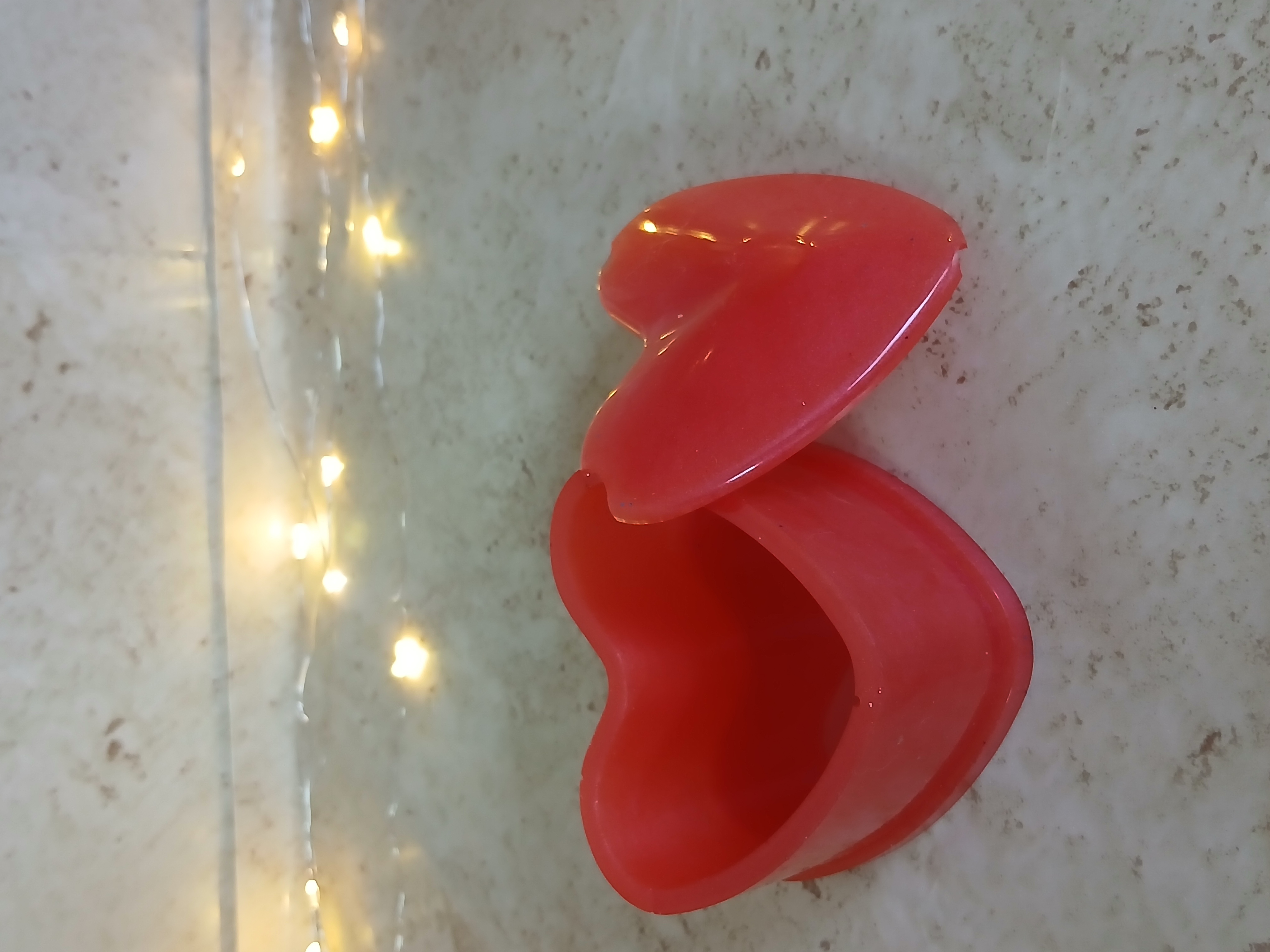 Choose your color and if you want to pearl of clear heart shaped trinket box and is made of resin about 3 inches across by an 1 1/2 inches high