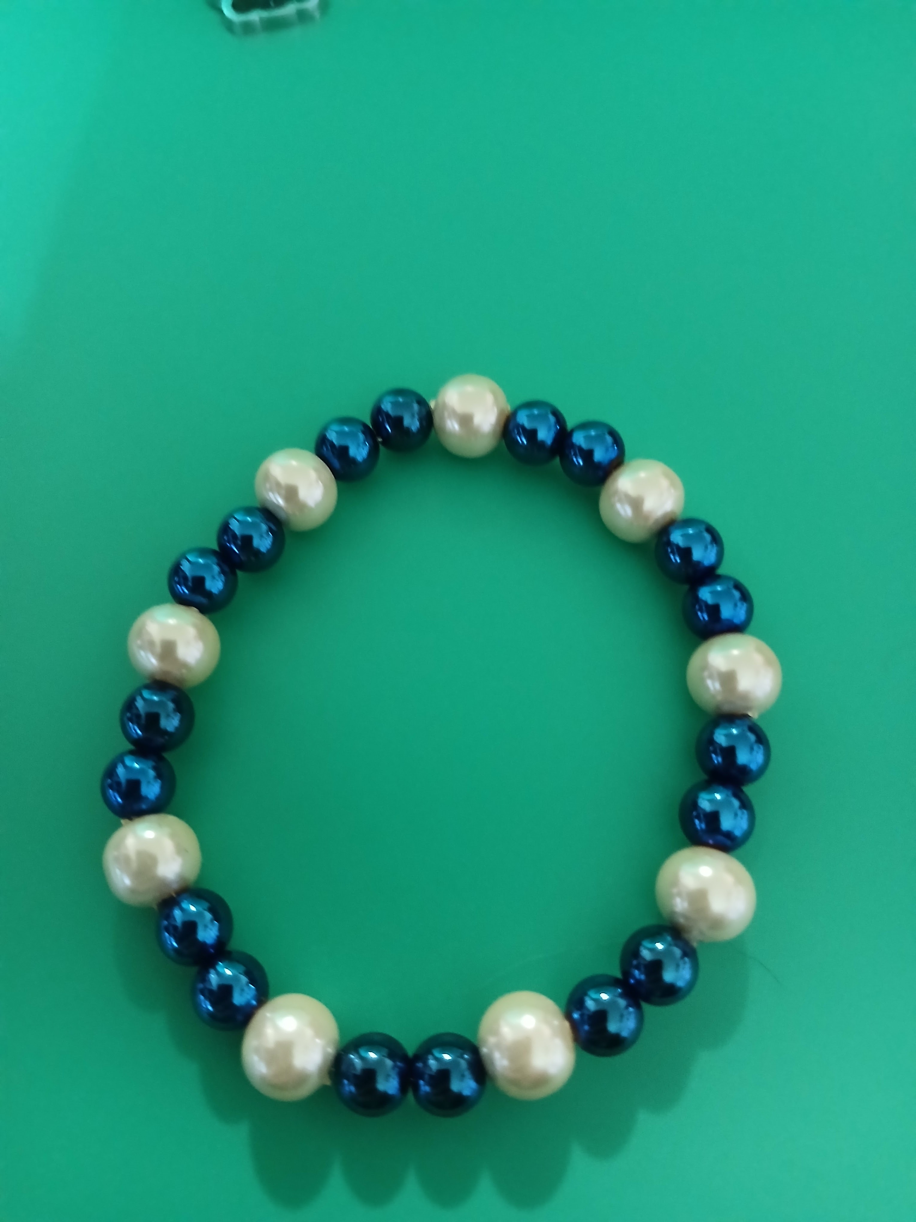 This metallic blue and pearl white magnetic bracelet is said to have healing powers other colors available text me to see what's available