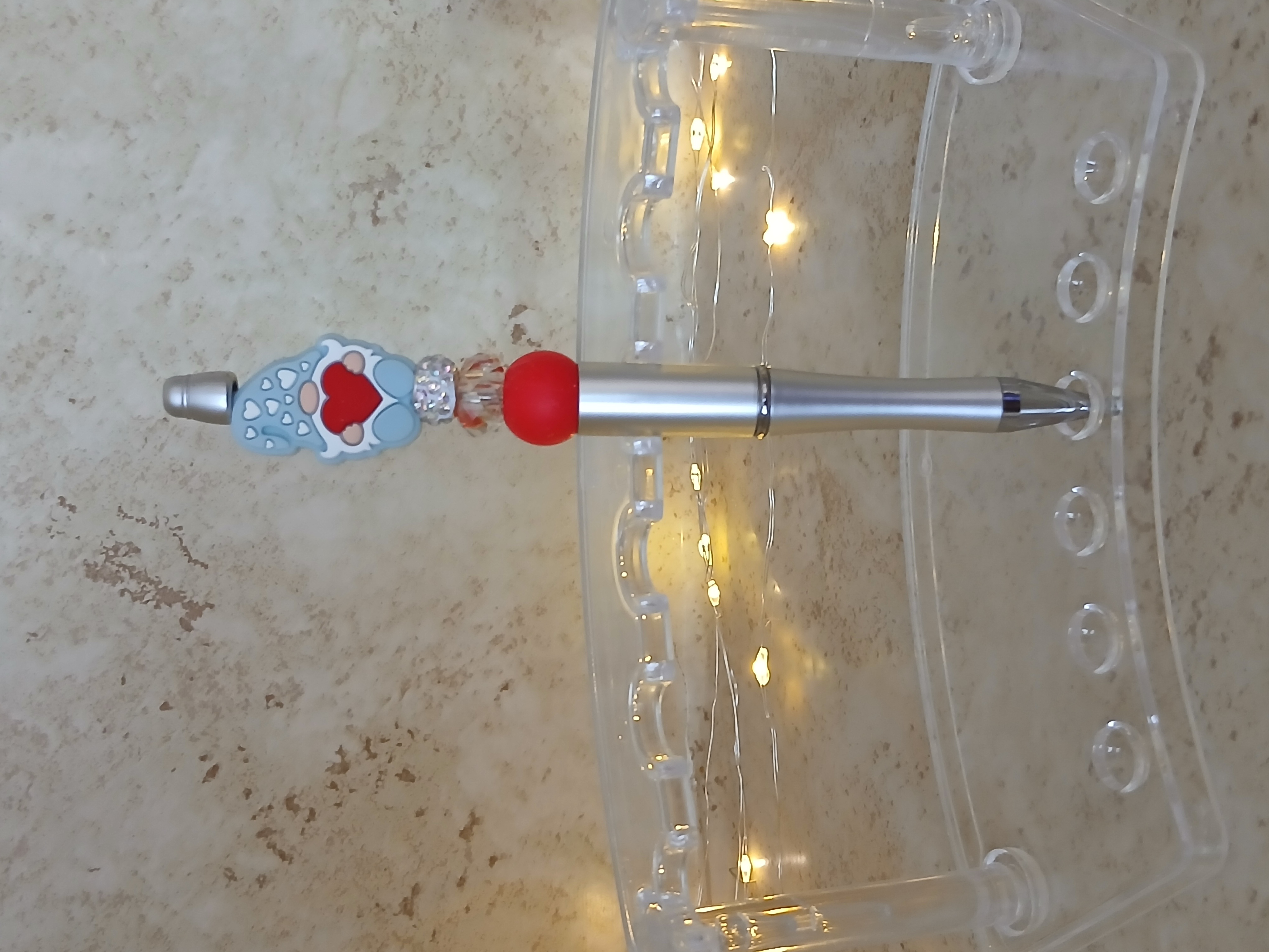 This Valentines day silver pen has a silicone grey gnome on it holding a red heart