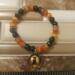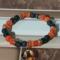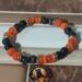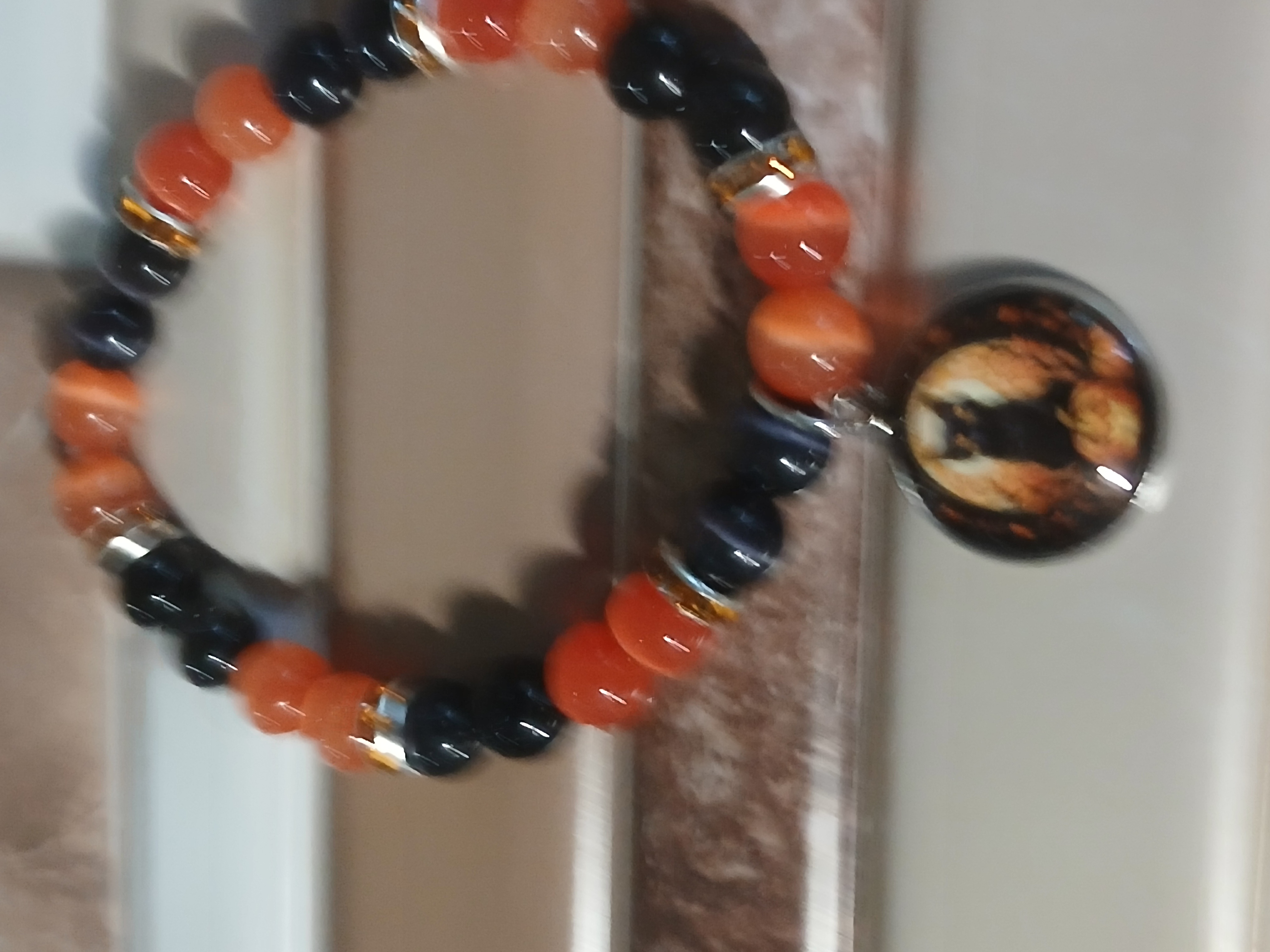 Dont let this cat cross your path. This black cat is with a pumpkin under his paw and scary trees around him all done in orange and black and the rest of the bracelet is made of black and orange beads you may want to wear this year round