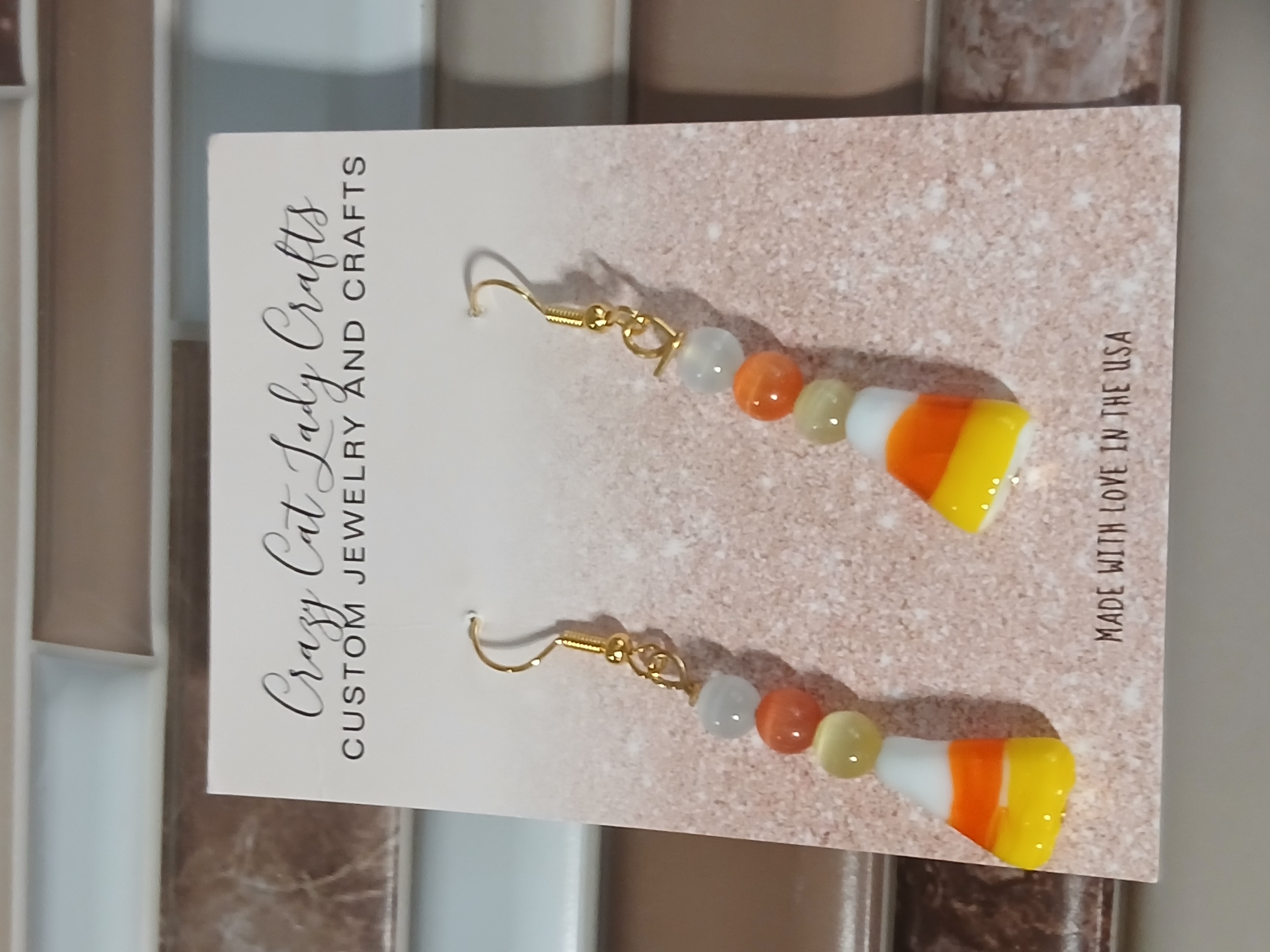Whats Halloween without candy corn? Well these orange white and yellow candy corn earrings are a non spooky way to celebrate Halloween