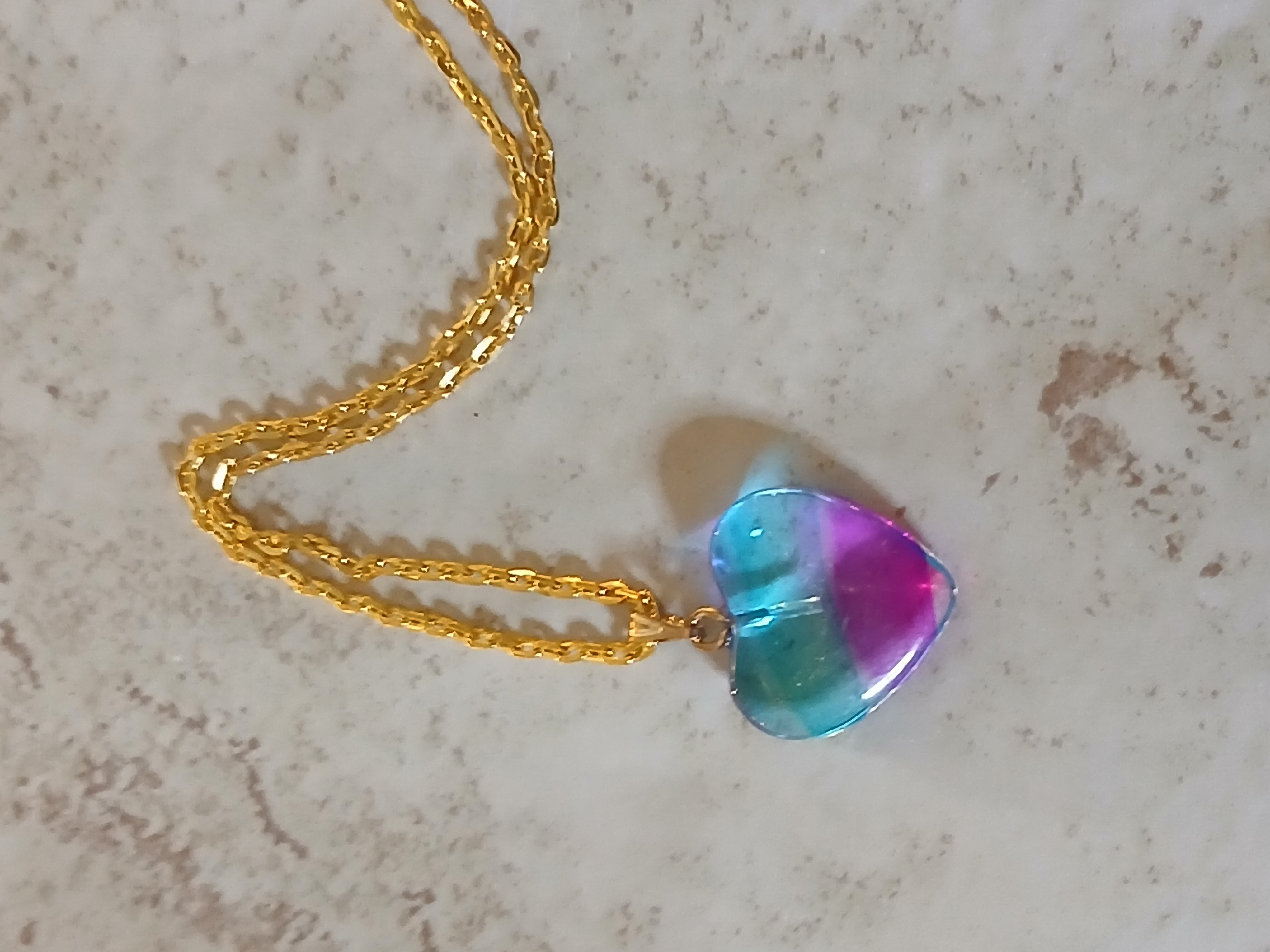 Blue and purple ombre heart shaped necklace on 18" gold chain